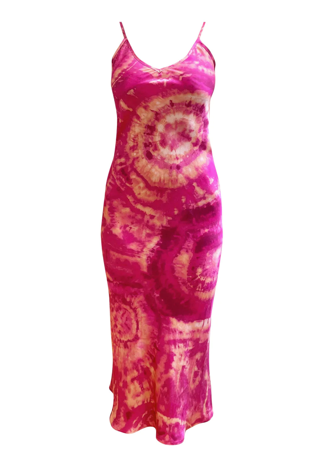 Rose Quartz Psychedelic Silk Slip Midi Dress