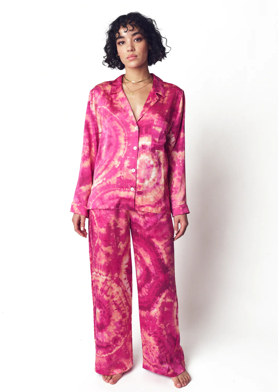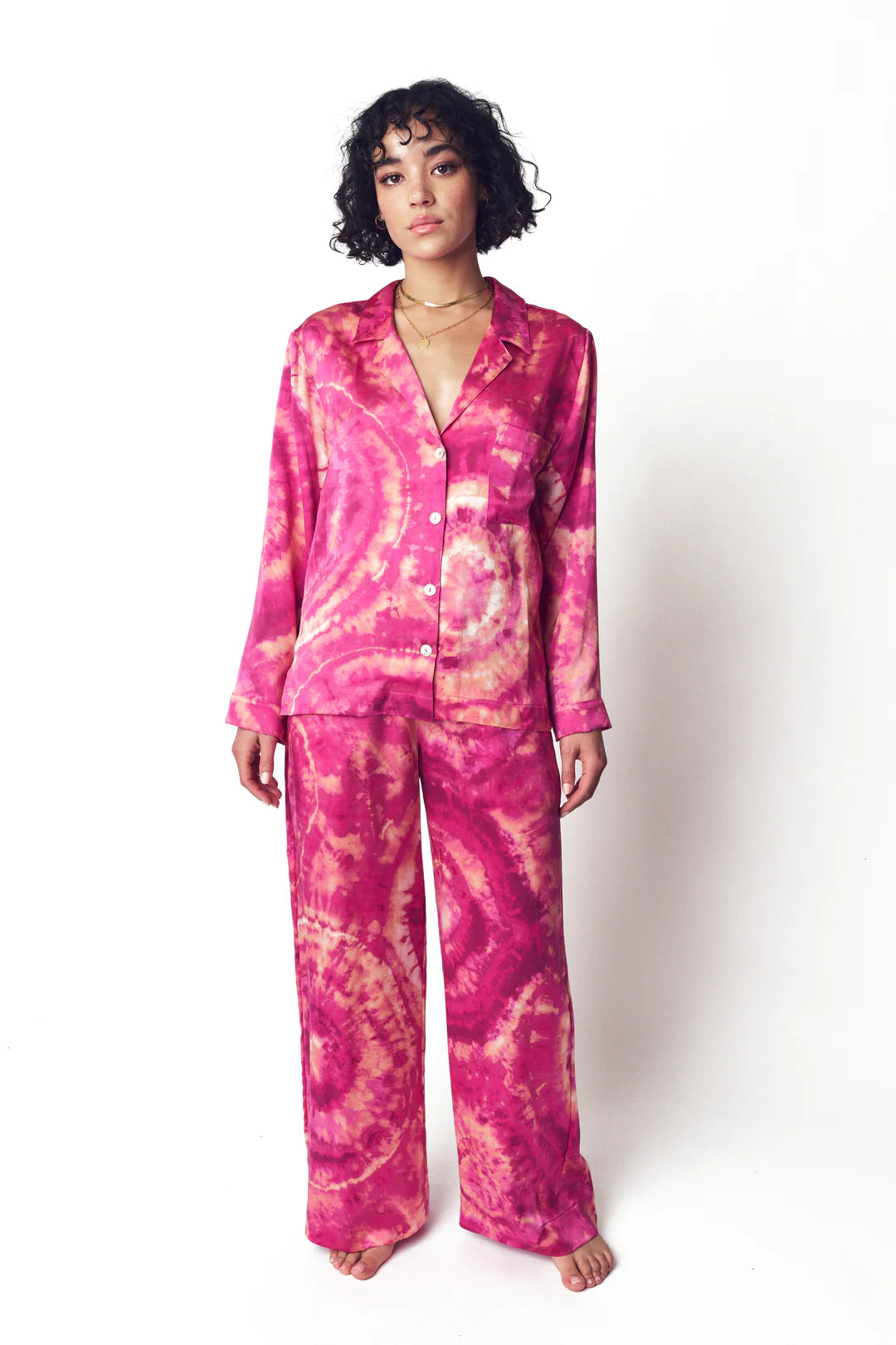 A little more palazzo than pajama, our silk bottoms offer a perfect fit with fun, funky, original tie-dye designs by our Brooklyn-based team.